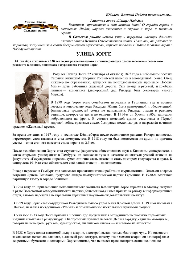 РАЙОННАЯ АКЦИЯ "УЛИЦЫ ПОБЕДЫ": Залазаева