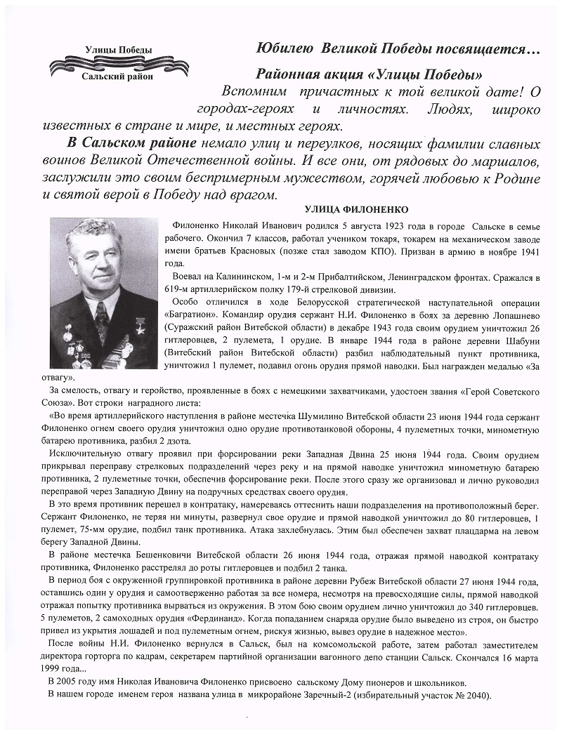 РАЙОННАЯ АКЦИЯ "УЛИЦЫ ПОБЕДЫ": Филоненко