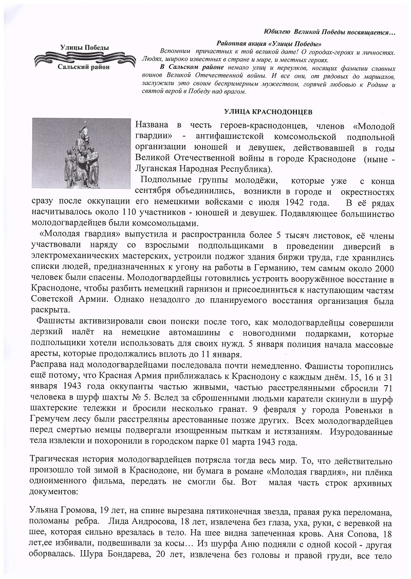 РАЙОННАЯ АКЦИЯ "УЛИЦЫ ПОБЕДЫ": Краснодонцев