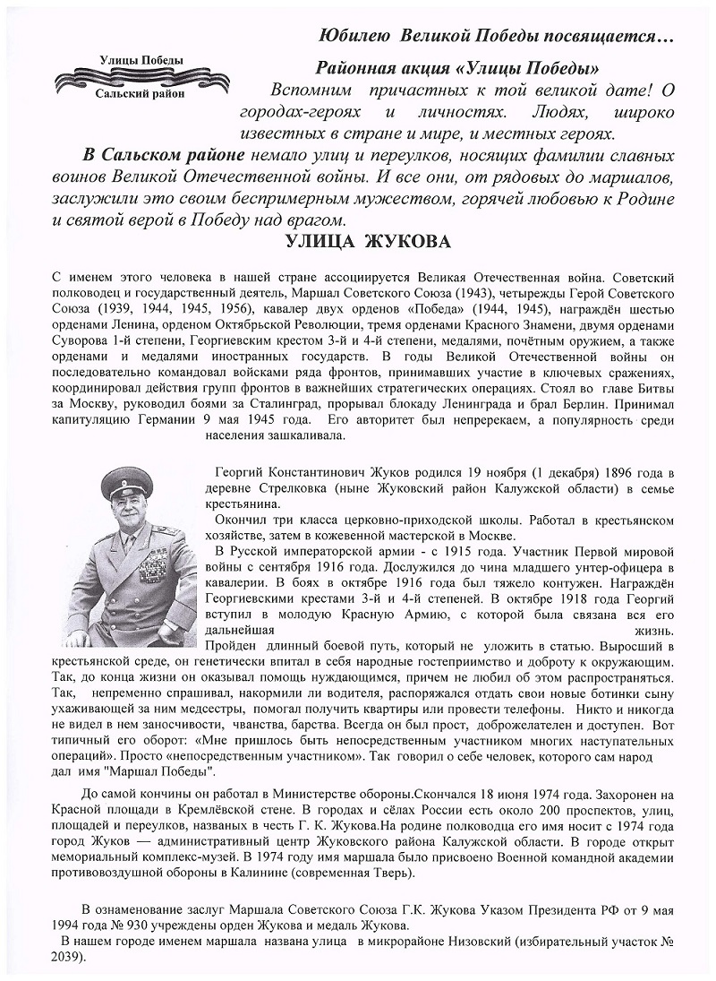 РАЙОННАЯ АКЦИЯ "УЛИЦЫ ПОБЕДЫ": ЖУКОВА